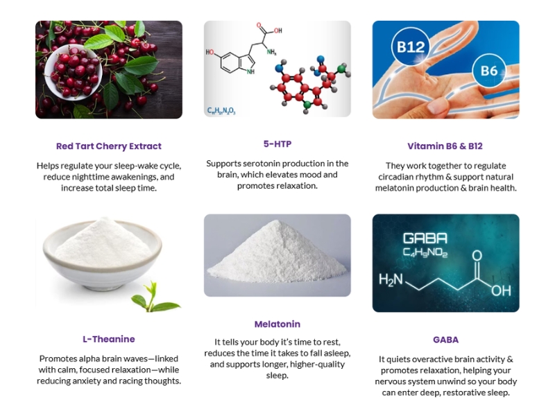 Tart cherry extract is a rich source of natural compounds that have been linked to supporting healthy melatonin rhythms without introducing synthetic melatonin into the body.This makes it ideal for users who are melatonin-sensitive or seeking melatonin-free sleep support.